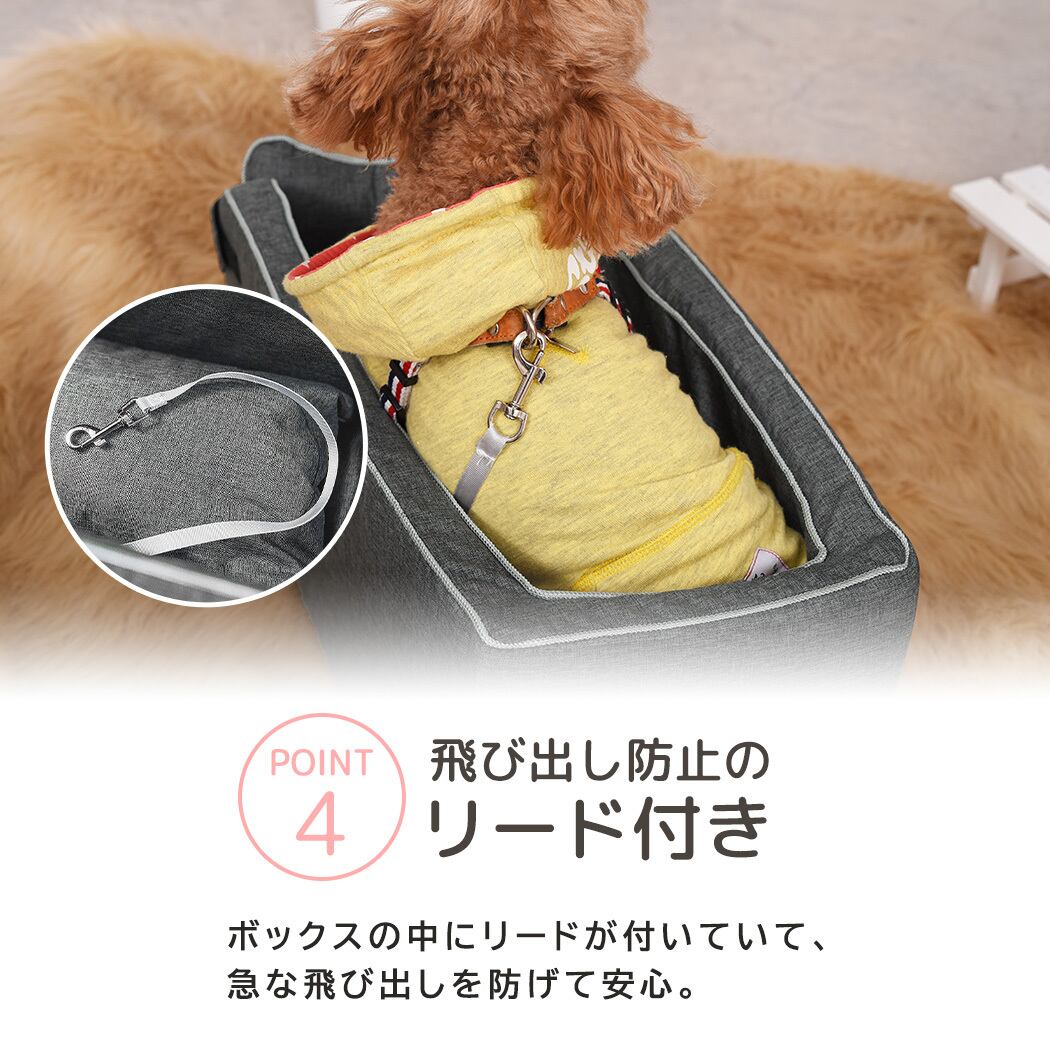 ボックスの中にリードが付いていて、急な飛び出しを防げて安心。