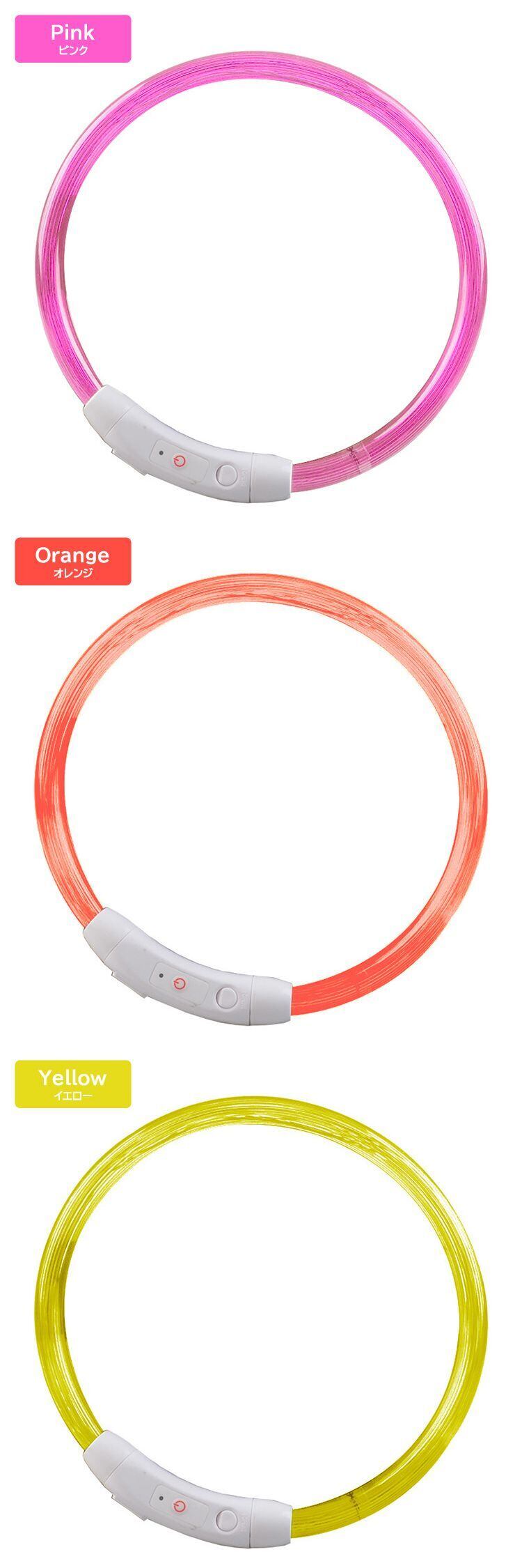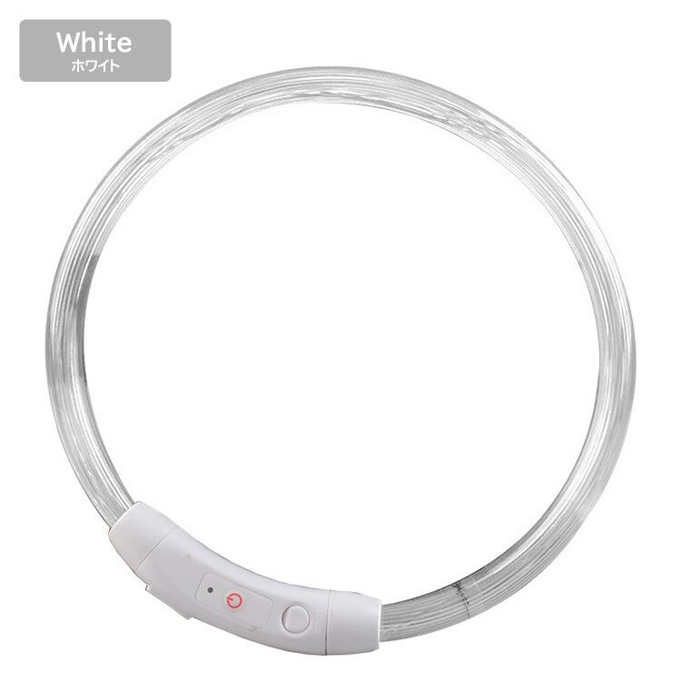 【メール便】犬 猫 首輪 おしゃれ かわいい 光る ライト カラー 白 USB 充電コード 2点セット 小型犬/pets183